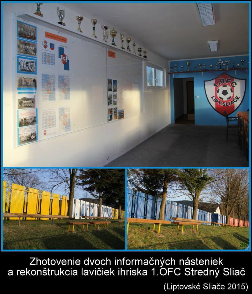 2. Zhotovenie dvoch informačných násteniek a rekonštrukcia lavičiek ihrisko 1 OFC Stredný Sliač