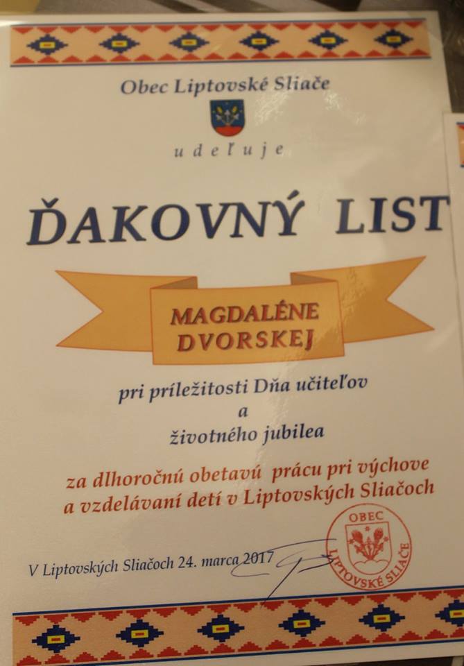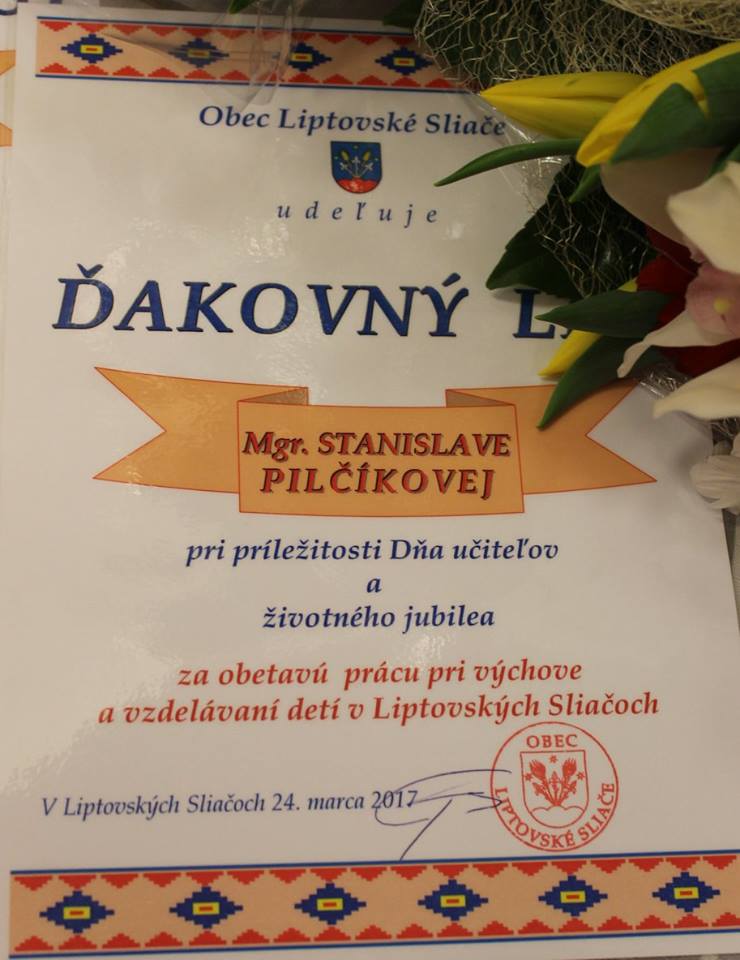 Zástupcovia obce ocenili jubilujúcich pedagógov.
