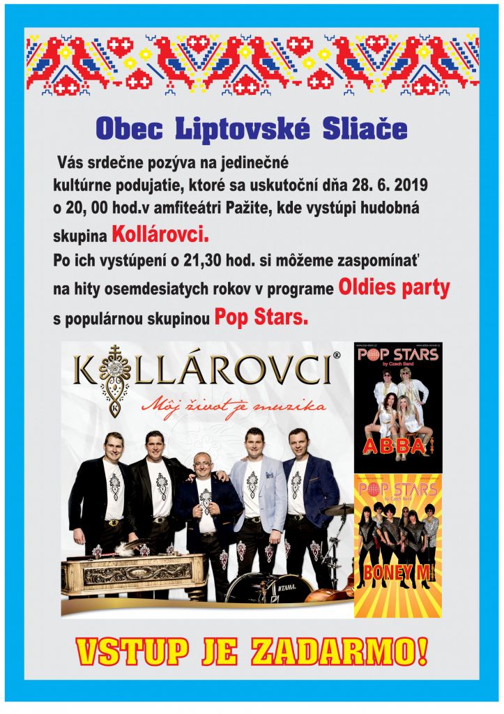 Srdečne Vás pozývame na vystúpenie goralskej hudobnej kapely Kollárovcov v amfiteátri Pažite v Liptovských Sliačoch.