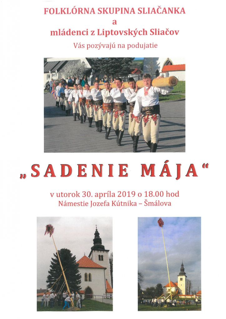 Folklórna skupina Sliačanka a mládenci z Liptovských Sliačov Vás pozývajú na "Sadenie mája"